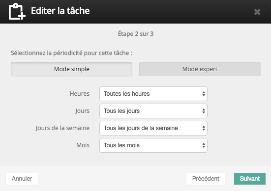Viens maintenant la configuration de la récurence. Il n'est pas possible avec les mutualisés d'OVH d'avoir un cron où la répétition est inférieure à 1h.