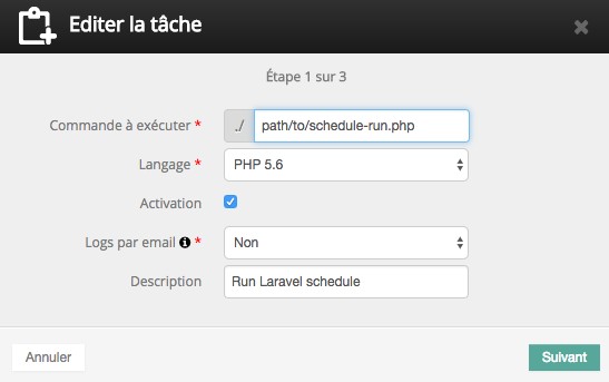 La première étape est maintenant terminée, nous pouvons maintenant configurer notre cron d'OVH pour exécuter le fichier schedule-run.php.